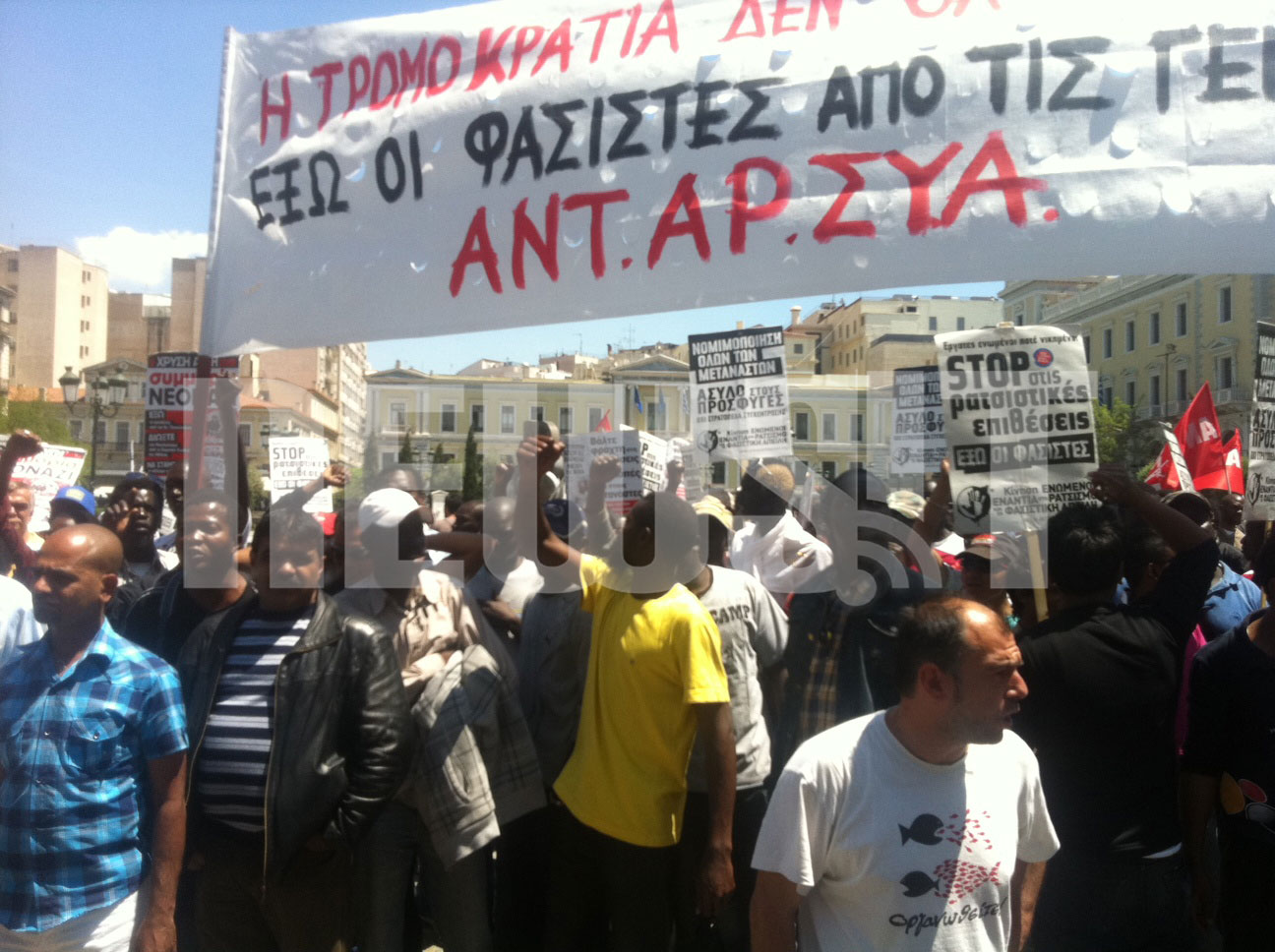 Εκεί βρίσκονται από νωρίς το μεσημέρι μέλη αριστερών οργανώσεων και μετανάστες.