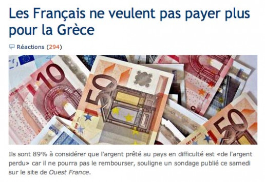 Το 89% των Γάλλων εκτιμούν πως η Ελλάδα δεν θα μπορέσει να αποπληρώσει τις υποχρεώσεις της, το 63% διαφωνούν με την προοπτική της αύξησης της συμμετοχής της Γαλλίας στο νέο πακέτο χρηματοδότησης και στήριξης της χώρας μας