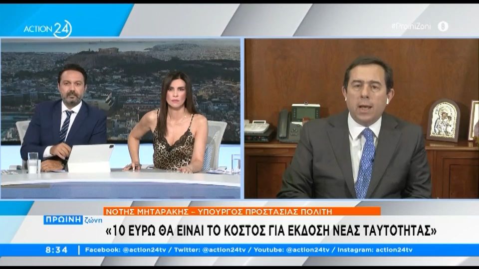 «Ο στόχος είναι τα επόμενα χρόνια να μπορούμε να ανανεώνουμε συγχρόνως και την ταυτότητα και το διαβατήριο μία φορά τη δεκαετία», τόνισε ο υπουργός Προστασίας του Πολίτη, μιλώντας στο Action24.